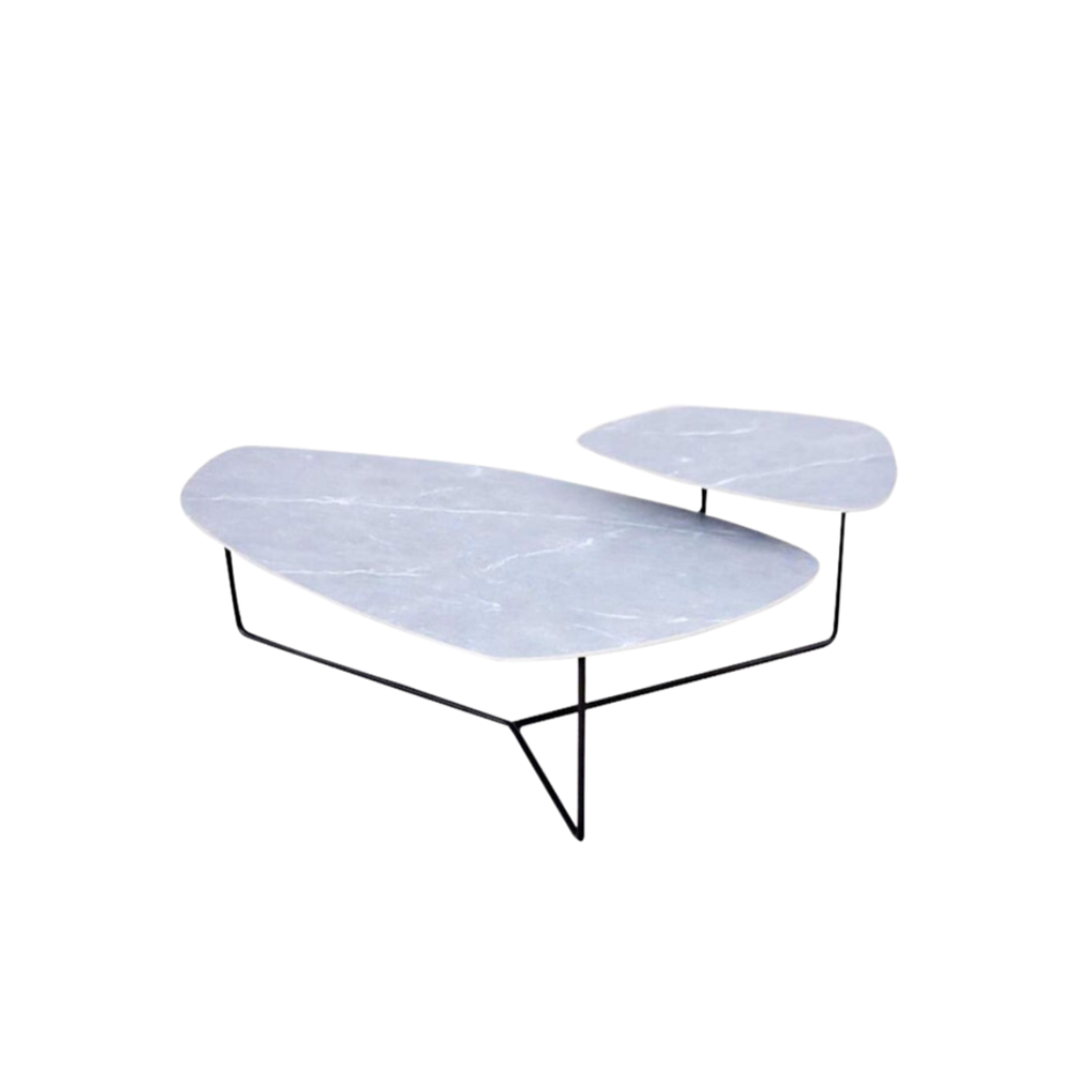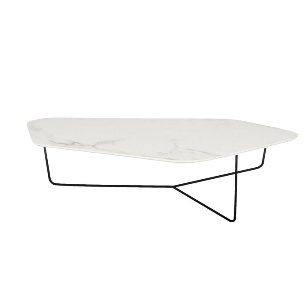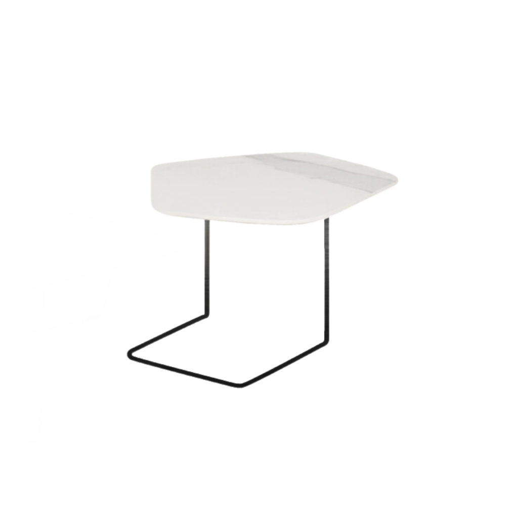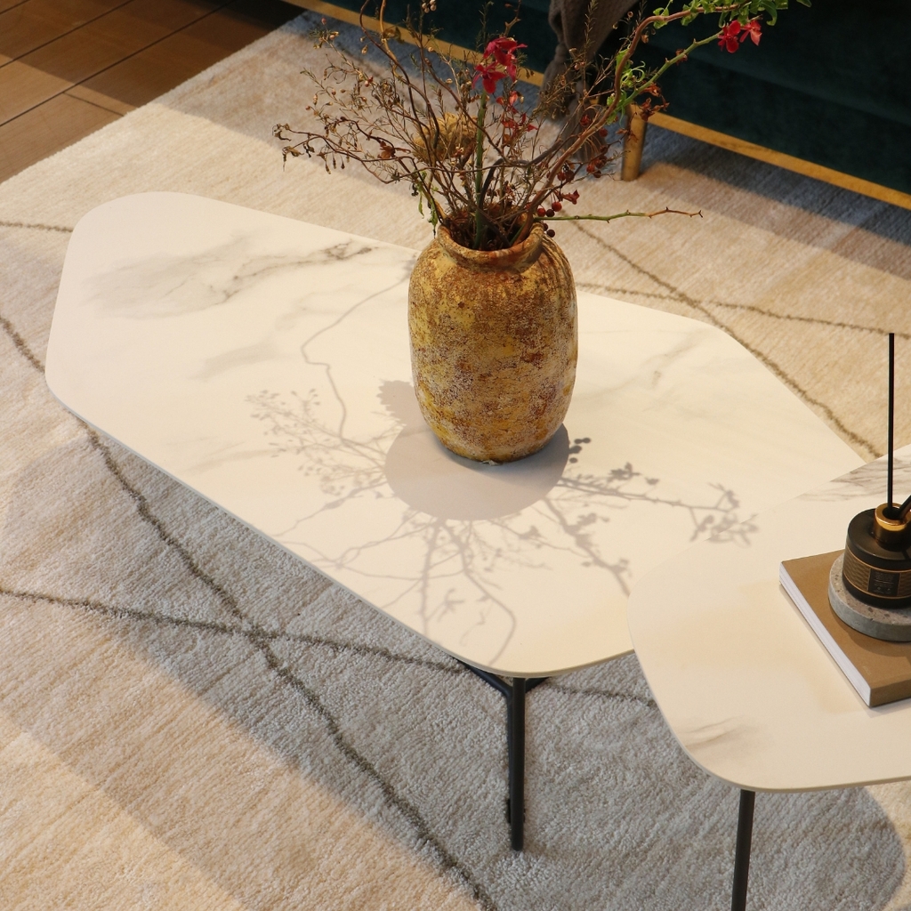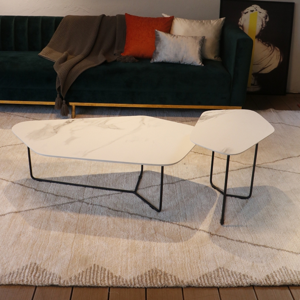 Chất liệu: Mặt bàn Ceramic trắng, chân sắt sơn đen tách rời.