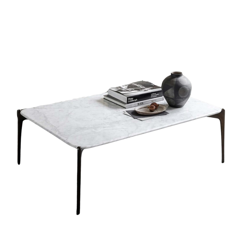 Mặt đá marble trắng, chân đế Bronza, kích thước 1200x800x380_REVEES
