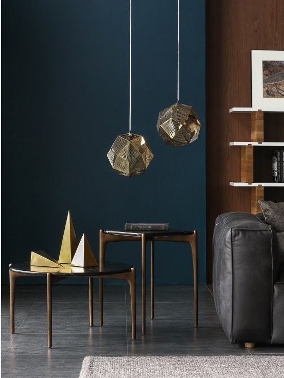 Một chiếc bàn cà phê với mặt bàn đá cẩm thạch đen Nero, chân kim loại sơn màu đồng sẽ là sự lựa chọn tuyệt vời cho phong cách thiết kế hiện đại, sang trọng và tối giản.