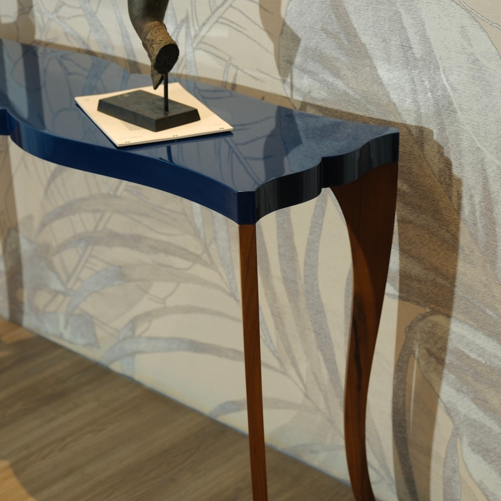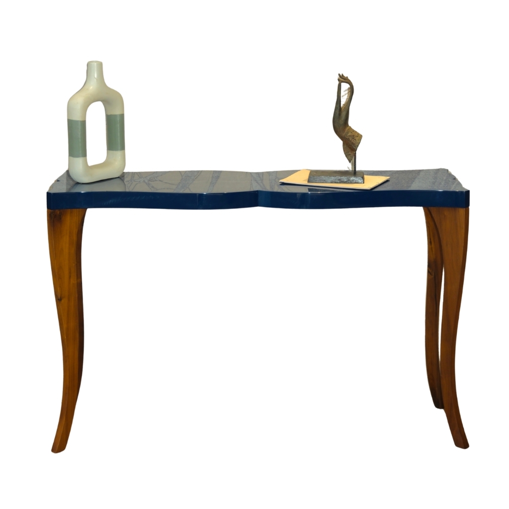 Chất liệu: Mặt bàn gỗ tự nhiên xử lý sơn mài, chân bàn gỗ óc chõ đánh bóng sáp ong