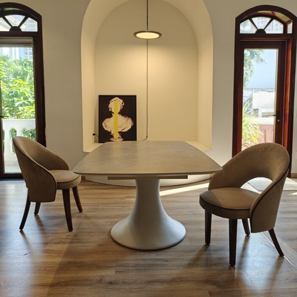 Tận hưởng sự êm ái và thoải mái tuyệt vời với ghế ăn bọc nệm cao cấp, được làm từ chất liệu nệm mềm mại và chân gỗ walnut tự nhiên với màu sắc tự chọn theo sở thích của bạn.
