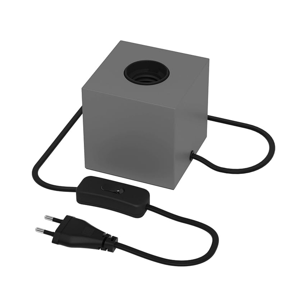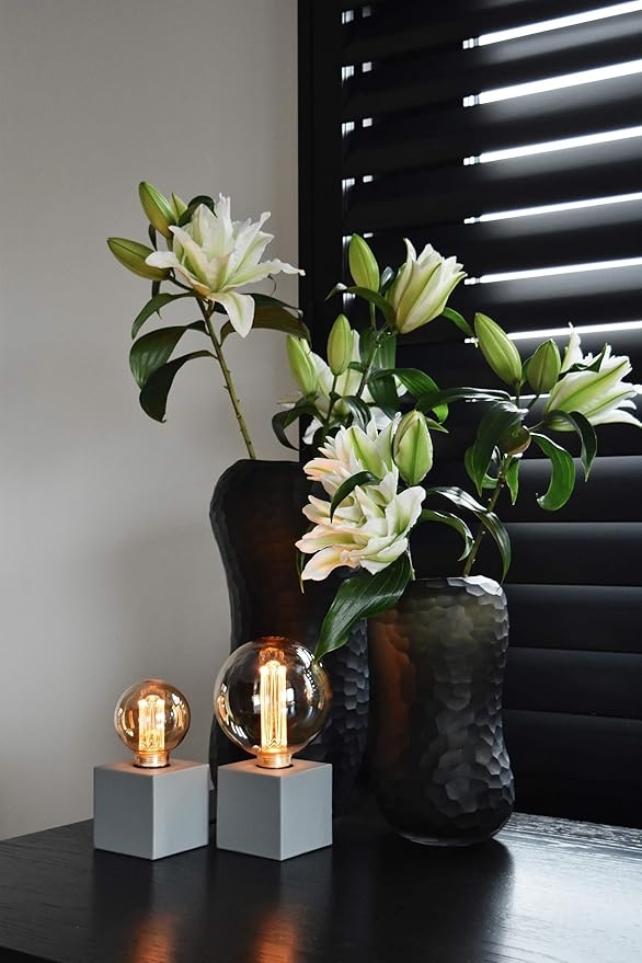 Đèn bàn thuỷ tinh D300 x H380mm Sơn tĩnh điện màu Đen, chao thuỷ tinh màu Khói ,Kèm bóng LED ánh sáng Vàng