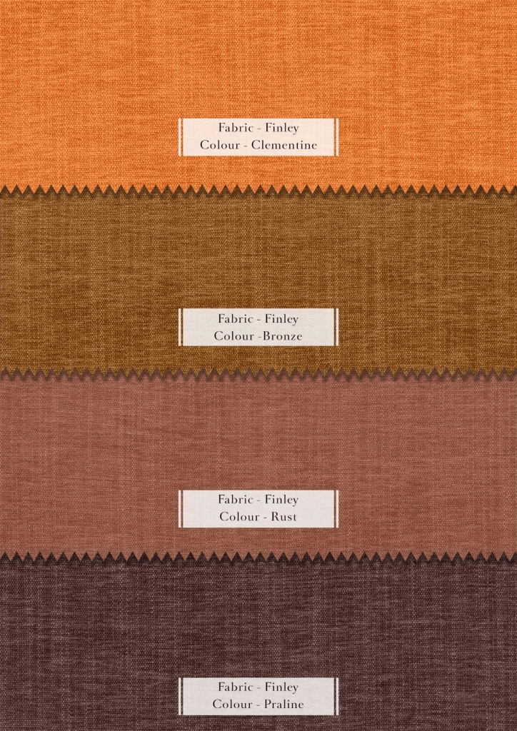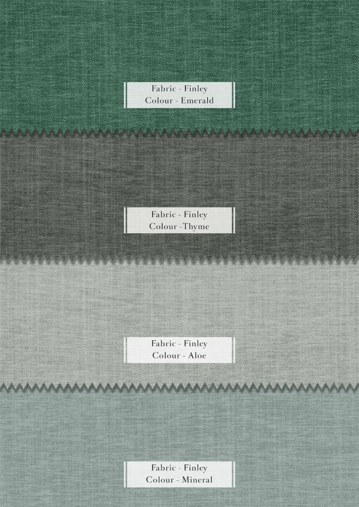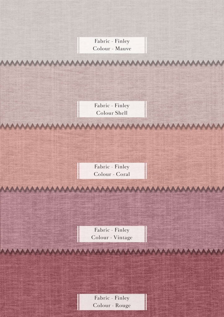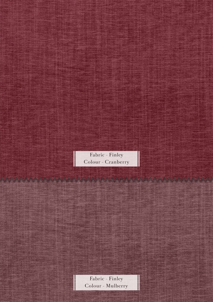 Finley là một loại vải chenille mềm mại và có kết cấu tinh tế, phù hợp để làm rèm cũng như bọc nội thất. Cả hai đều có sẵn trong bảng màu đa dạng, từ những tông màu tự nhiên thanh lịch đến những gam màu rực rỡ như đỏ cranberry và xanh peacock.