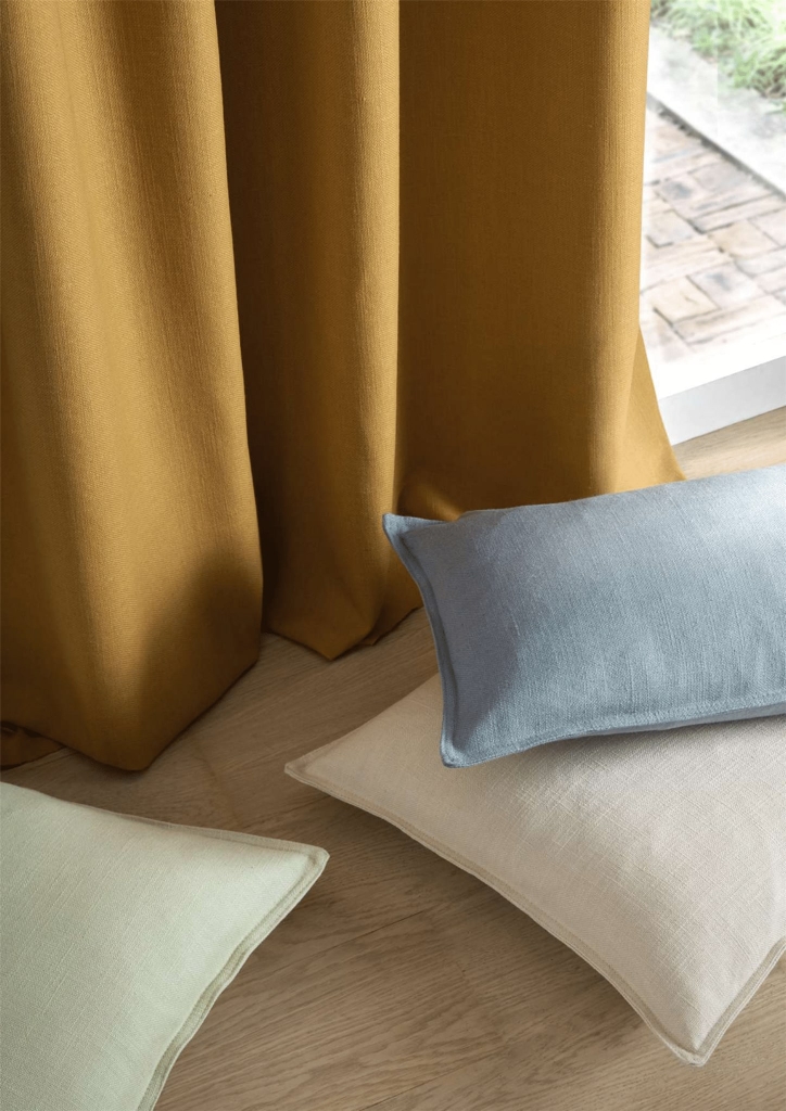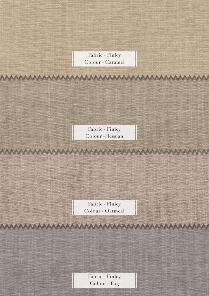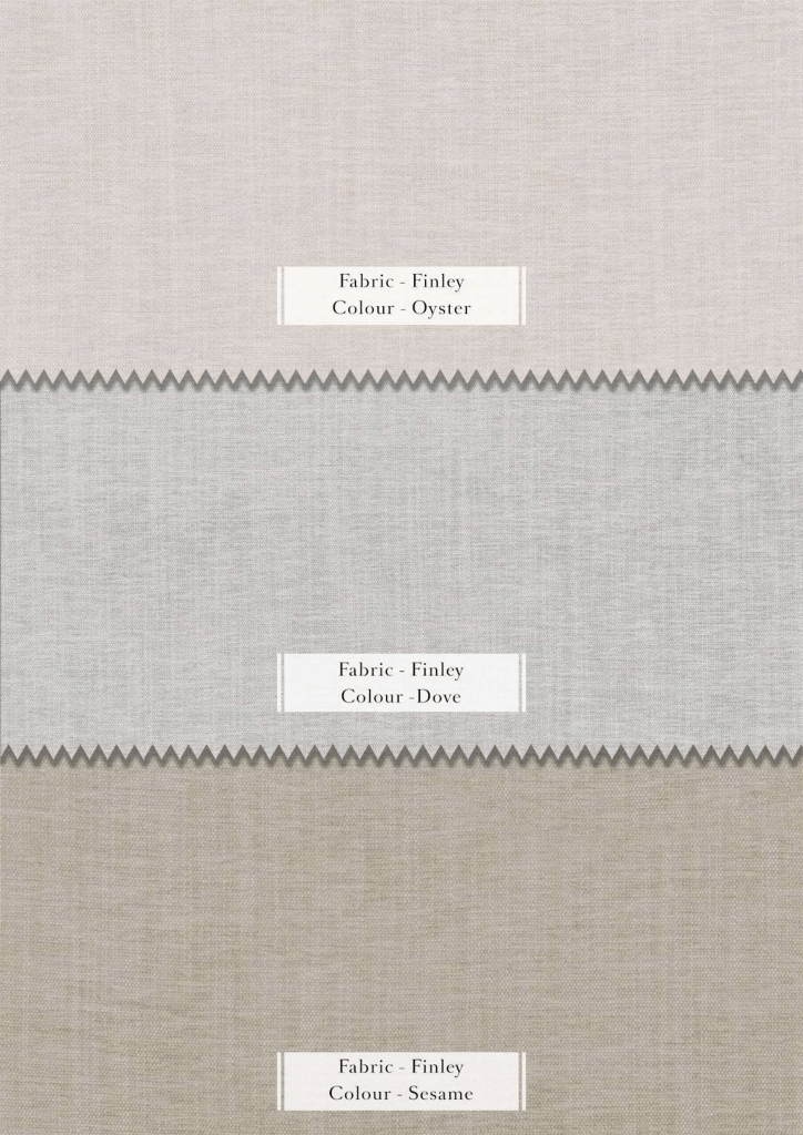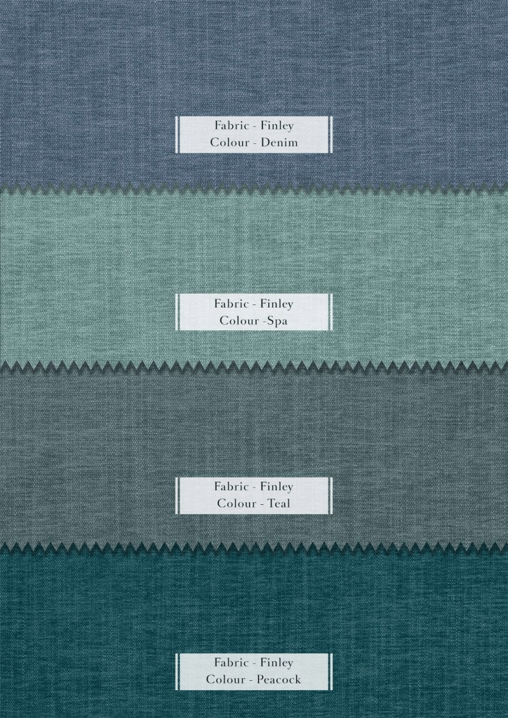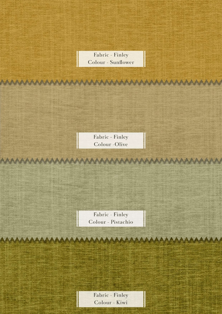 Finley là một loại vải chenille mềm mại và có kết cấu tinh tế, phù hợp để làm rèm cũng như bọc nội thất. Cả hai đều có sẵn trong bảng màu đa dạng, từ những tông màu tự nhiên thanh lịch đến những gam màu rực rỡ như đỏ cranberry và xanh peacock.