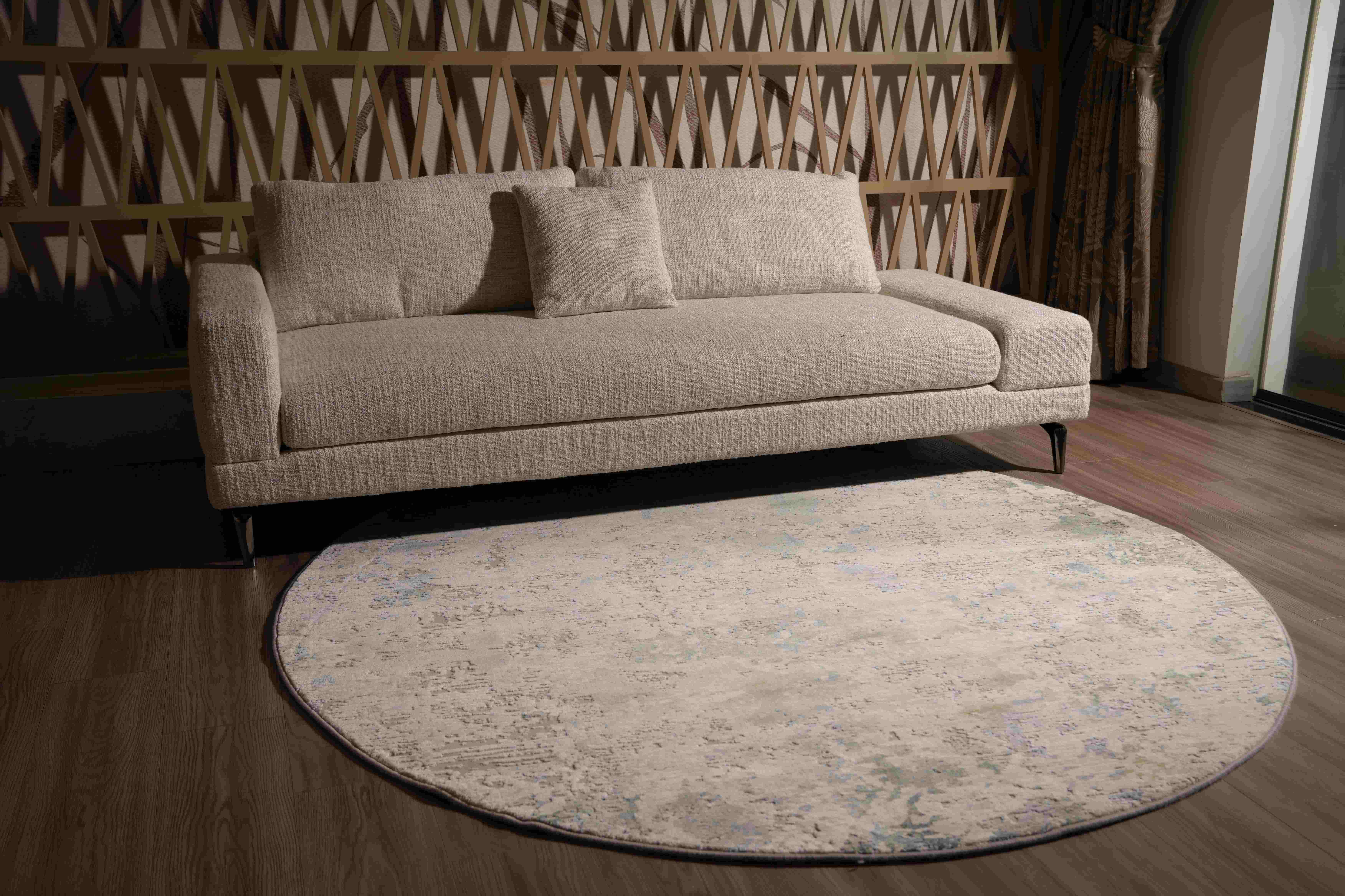 - Bàn trà và thảm: Một chiếc bàn trà mặt đá marble hoặc gỗ tự nhiên cùng thảm trải sàn hình học hoặc tròn sẽ giúp định hình và hoàn thiện không gian xung quanh chiếc sofa chữ I này.