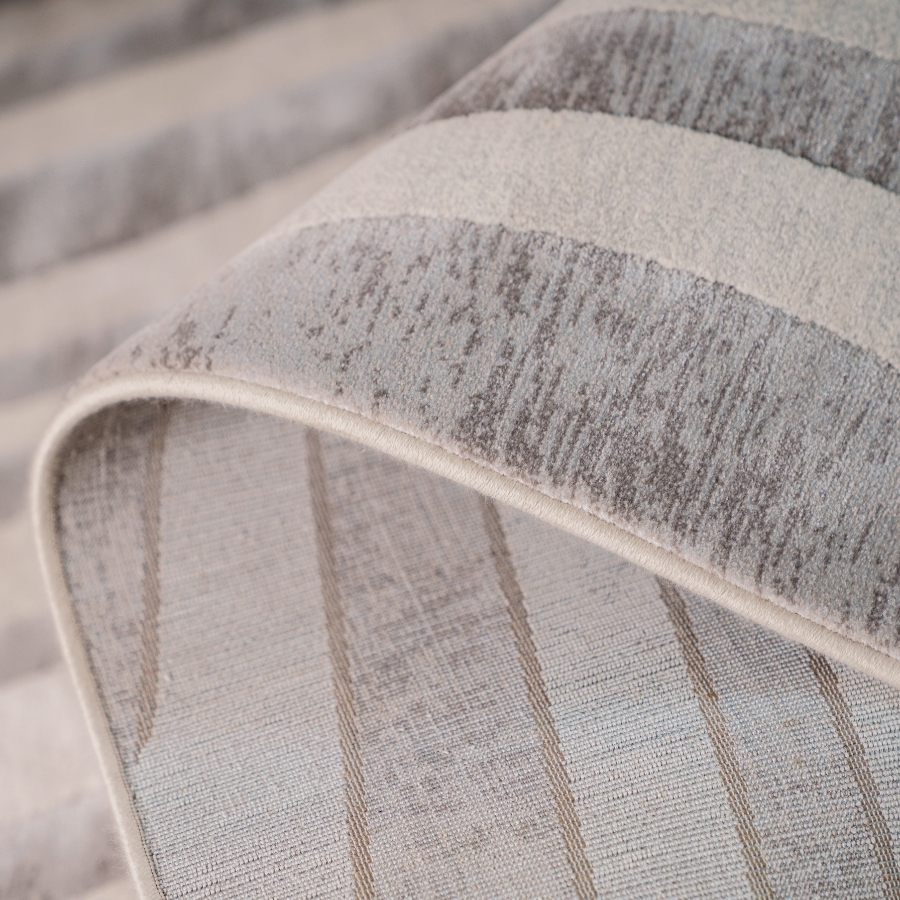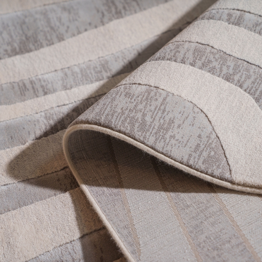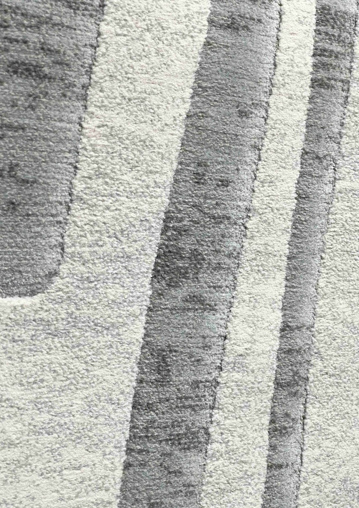 Thảm Len Argentum 6979 mang phong cách hiện đại với thiết kế đường vân uốn lượn độc đáo, tạo cảm giác như những đường vân gỗ hay họa tiết nghệ thuật trừu tượng. Sự kết hợp tinh tế giữa hai gam màu xám và trắng bạc đem lại vẻ đẹp sang trọng, tối giản nhưng đầy ấn tượng.